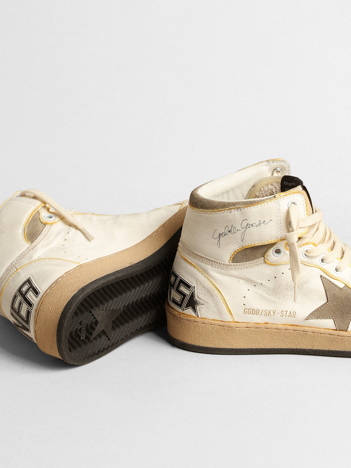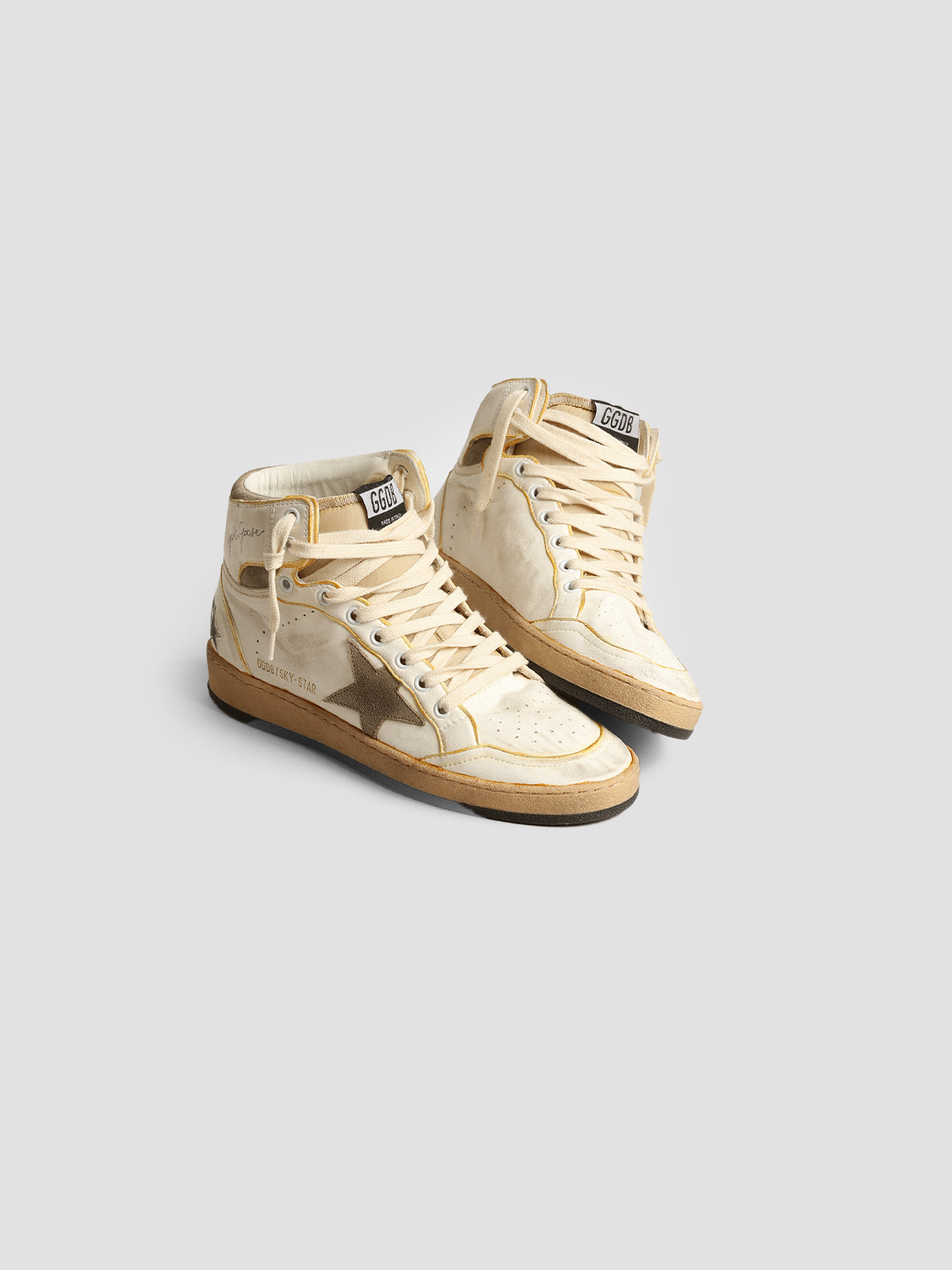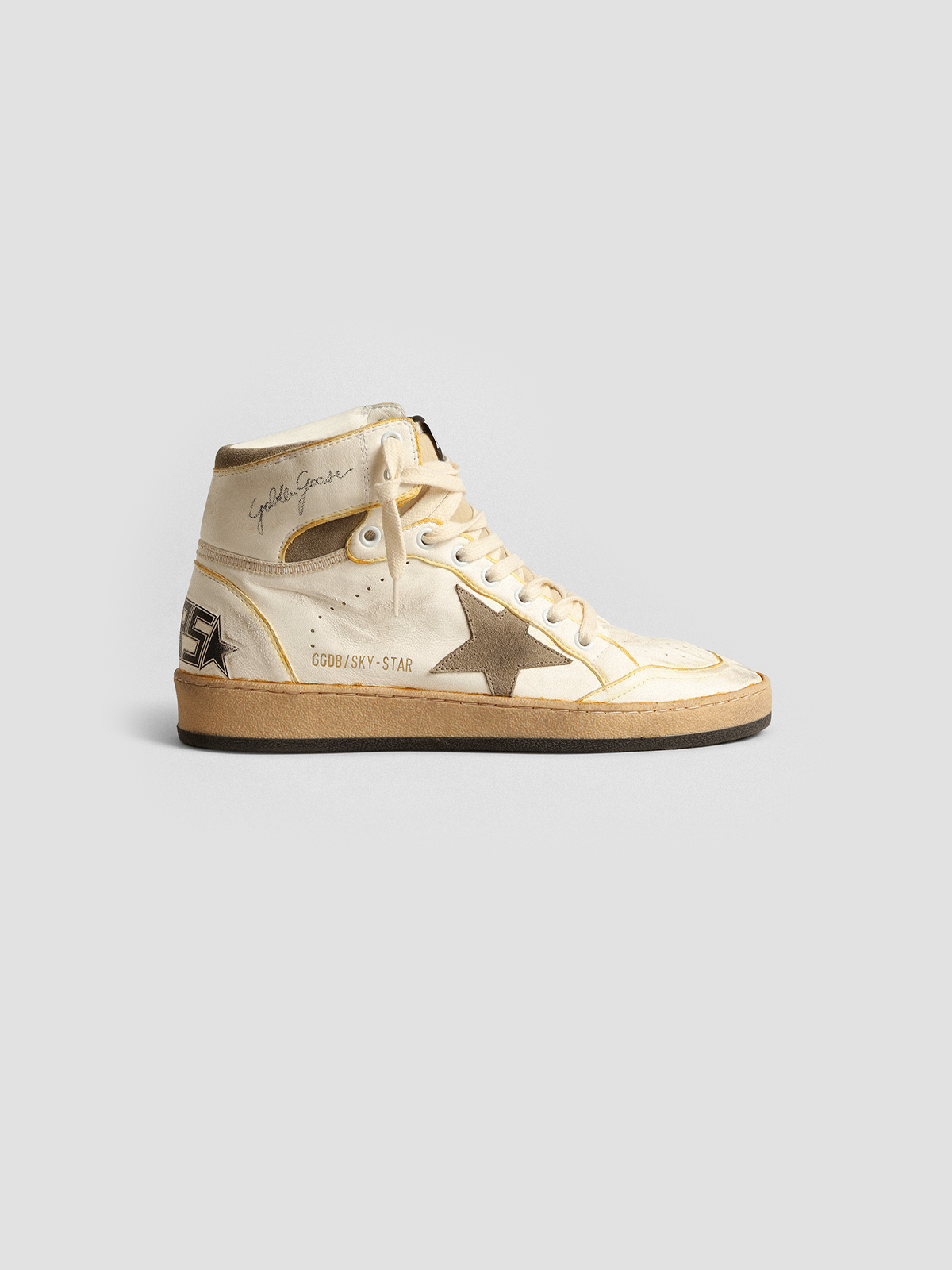 Eine zeitlose Ikone, die sich dennoch ständig weiterentwickelt. Wir bei Golden lieben es, unsere Klassiker zu nehmen und sie immer wieder aus einem neuen Blickwinkel zu interpretieren. Dieser Super-Star mit weißem Obermaterial aus Leder besticht durch einen goldenen Glitzerstern, eine Fersenpartie aus silbermetallischem Leder und eine Zunge aus eisgrauem Wildleder. Der eisgraue Wildledereinsatz auf der Rückseite und die cremefarbenen Schnürsenkel verleihen dem Schuh den letzten Schliff.